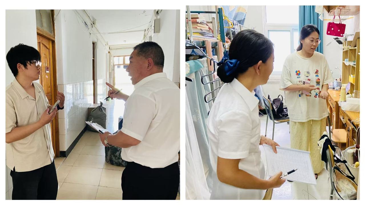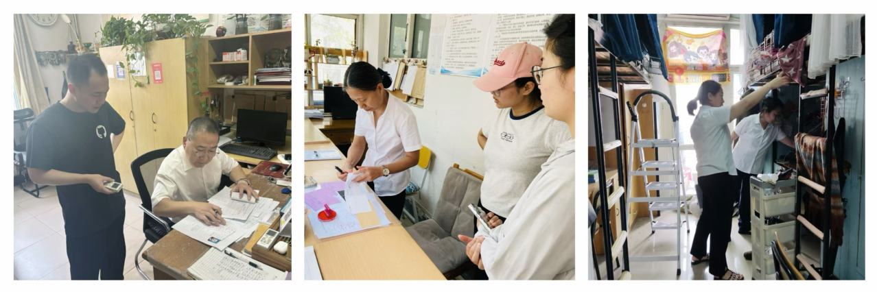 倾心服务细致入微6月13-14日为毕业生集中离校期间,公寓各楼宇值班室实行双人双岗值班,她(他)们坚守岗位,按照流程主动服务,按照学校规定把控时间节点,密切关注退宿情况,热情提醒毕业生别急别躁、仔细清点打包物品、勿遗漏等。为便于毕业生打包行李,各值班室提前准备了编织袋、胶带和剪刀,以便有需要的同学使用;考虑到天气炎热,在宿舍区主要路口,放置饮水机,方便同学和家长饮用;每每看到同学吃力搬运大包行李,宿管阿姨、大叔主动上前,搭手拎包裹、抬箱子。