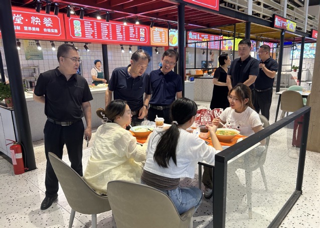张校长从学生食堂开始检查,在六食堂、八食堂、七食堂、三食堂与就餐学生亲切交谈,听取大家对食堂服务的意见和建议。随后又深入后厨操作间及食品仓库等地点,仔细检查了工作人员健康证、环境卫生、食品加工流程、原料采购与储存、消防设施安全等情况。他强调,食品安全是校园安全工作的重中之重,必须严把源头关、过程关,确保师生吃的健康、安全、实惠。