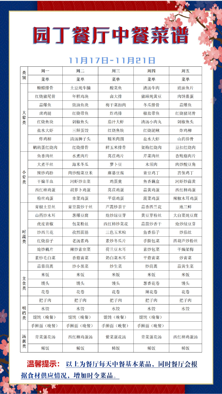 根据大数据分析,餐厅11:25-11:35、11:45-11:50、12:00-12:05三个时间段为就餐高峰期,为了减少排队等待时间,老师们可以选择错峰就餐。