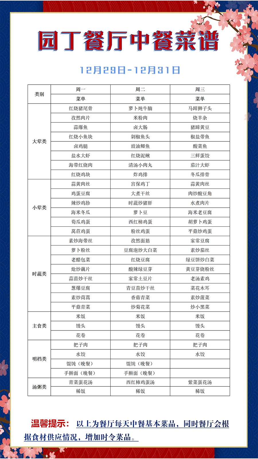 根据大数据分析,餐厅11:25-11:35、11:45-11:50、12:00-12:05三个时间段为就餐高峰期,为了减少排队等待时间,老师们可以选择错峰就餐。
