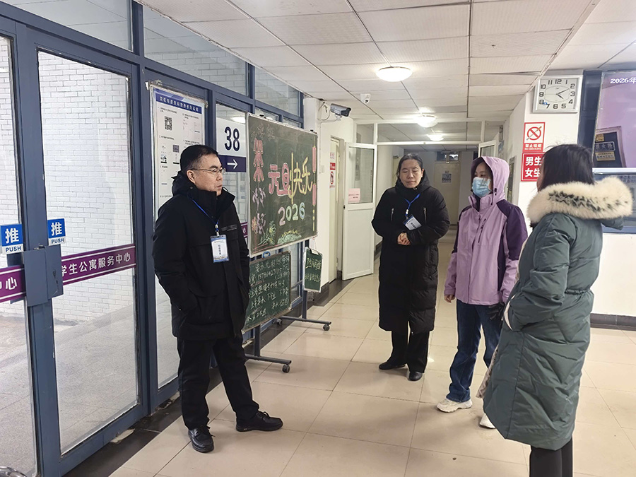 检查组重点对消防安全、用电安全、宿舍安全、食品卫生、值班巡查制度及冬季设施设备专项防护等方面进行了全面的检查。检查组仔细核查了各服务值班场所值班与巡查情况、安全管理制度落实情况,并与在场的职工进行深入交流,并详细了解寒假期间值班安排、服务保障机制和应急预案准备等情况。对学生宿舍、寒假值班食堂、教学楼宇、配电室等关键服务场所进行常规安全检查的同时,特别针对冬季严寒天气可能带来的风险,对全校供电、供水、供暖设施及户外防冻防滑设施情况进行了细致排查,确保保温措施完好有效,并对应急抢修、抢险物资储备进行了检查。此外,检查组与部分留校学生亲切交谈,叮嘱他们注意假期用电安全,增强自我保护意识。