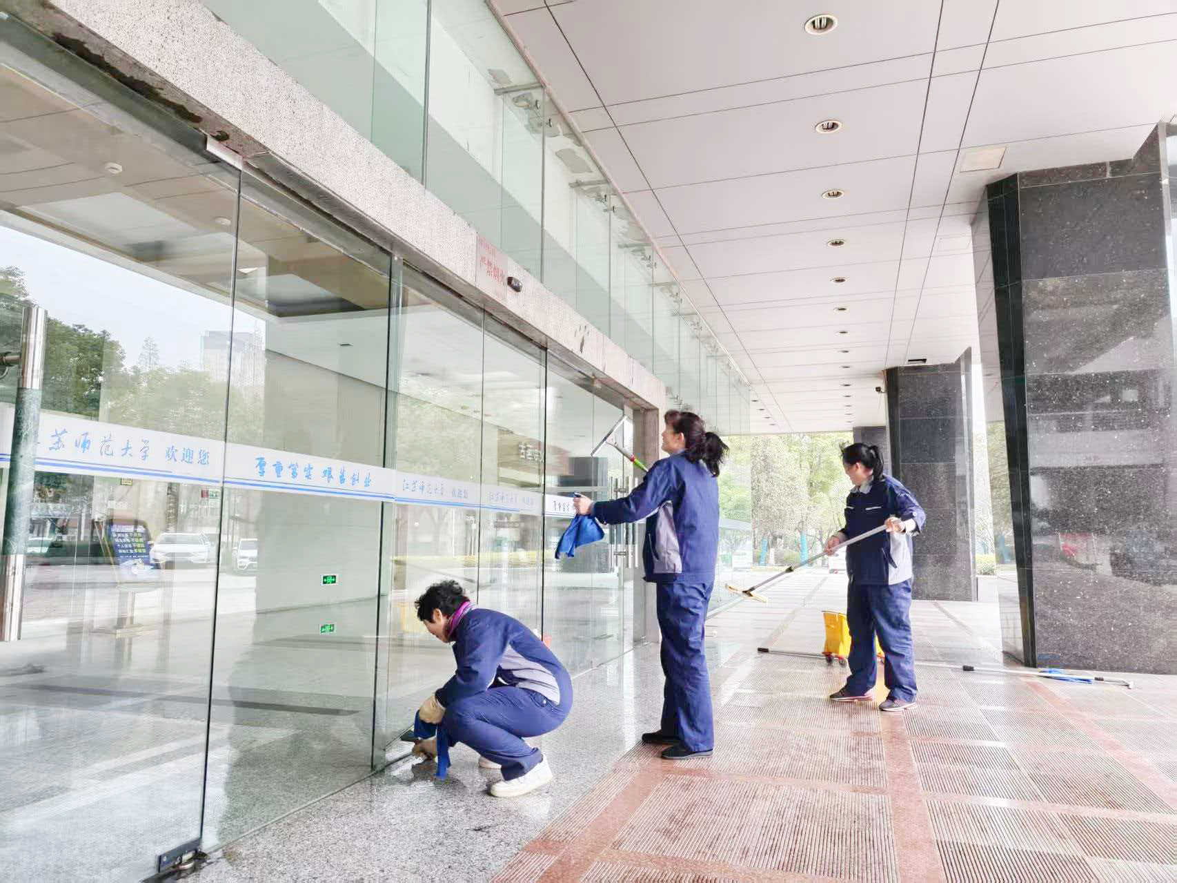精细保洁,营造育人环境。从室内到公共区域,从墙面到地面,逐一清扫、不留死角,重点对中心管理的402间教室、57间机房、10000余平方米自习空间及教学楼内的公共区域、卫生间、杂物间、会场等进行了全面深度保洁;协助信资处完成多媒体教室的多媒体设备更新工作;全面排查设施设备,及时补充粉笔、更换板擦,细致入微提升服务品质,为师生打造整洁温馨的学习空间。