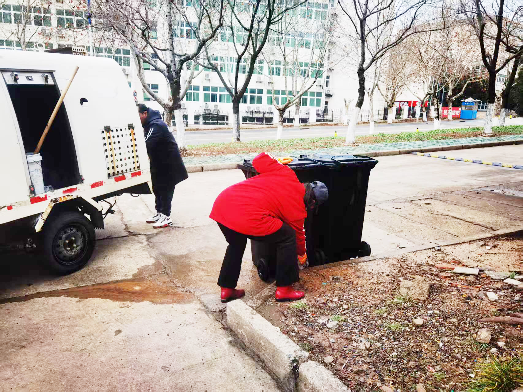 绿化美化,焕新校园面貌。抢抓时节,对泉山、云龙两校区进行树木修剪、枯枝清理、池塘清淤,结合苗木生长情况开展施肥复壮;校园日常保洁同步推进,垃圾分类环保屋、垃圾桶全面消毒,垃圾清运频次根据实际动态调整,确保开学季日产日清;对道路、路牙石、雨水井、排水沟等区域进行集中排查、清理等工作,彻底消除卫生死角,以清新、整洁、美丽的校园环境迎接新学期。