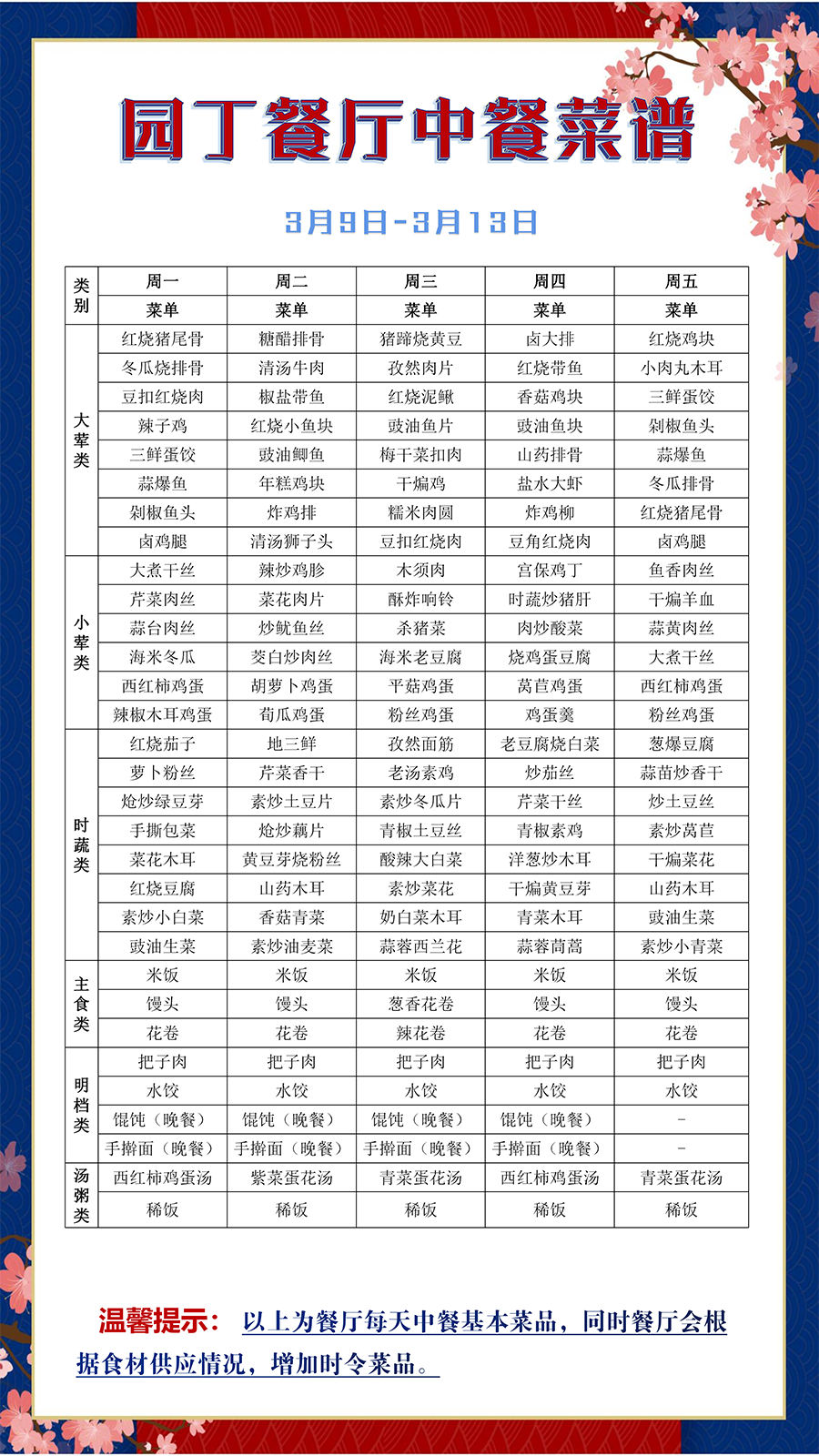 根据大数据分析,餐厅11:25-11:35、11:45-11:50、12:00-12:05三个时间段为就餐高峰期,为了减少排队等待时间,老师们可以选择错峰就餐。