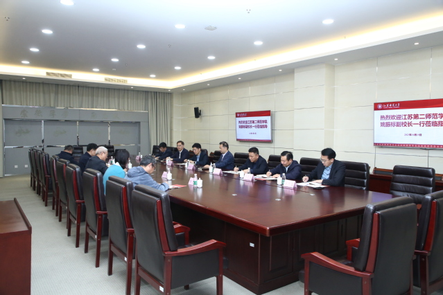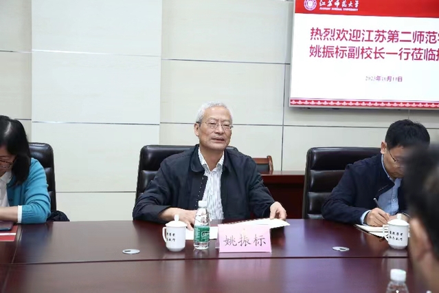 姚振标对我校的热情接待表示感谢,并介绍了江苏第二师范学院发展历程,办学规模及特色情况。他希望双方以此次调研交流活动为起点,进一步加深友谊,增进了解,充分发挥各自优势,不断加强合作,取长补短,为学校发展提供思路借鉴、注入推进动力。